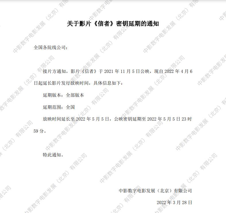 《信者》密钥延期的通知