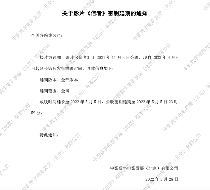 《信者》密钥延期的通知