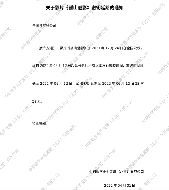 《孤山魅影》密钥延期的通知