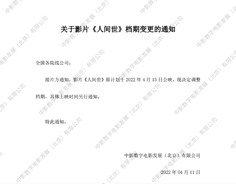 《人世间》发行通知