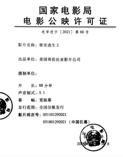 幕 幅:详见影片公映许可证