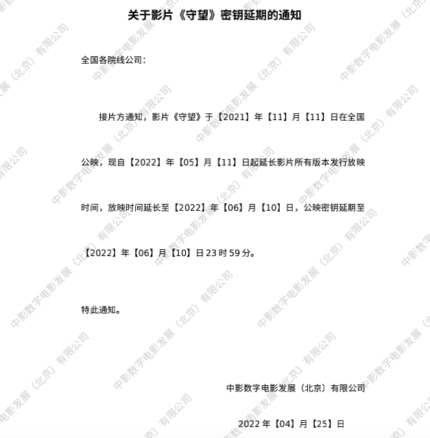 《守望》密钥延期的通知
