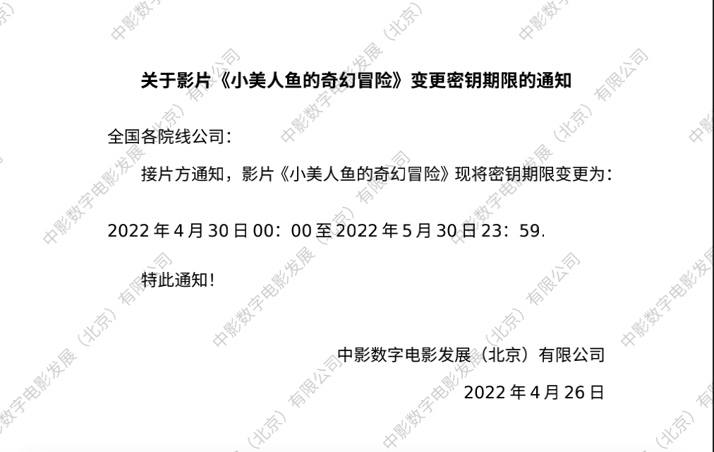 《小美人鱼的奇幻冒险》第三次全国密钥延期的通知