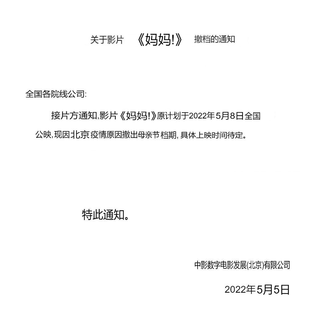 《妈妈!》发行通知