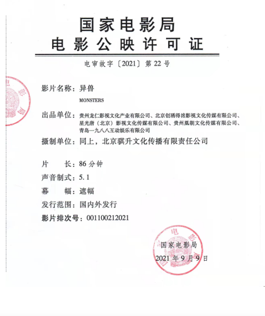 联合发行:华夏电影发行有限责任公司、霍尔果斯咏年影视文化传媒有限公司