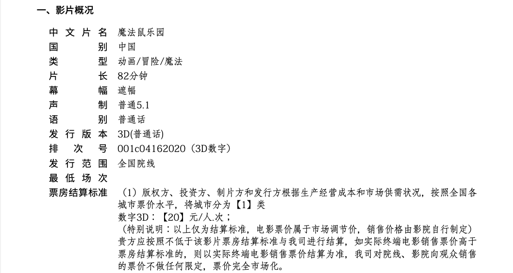 关于影片《魔法鼠乐园》全国点映的通知