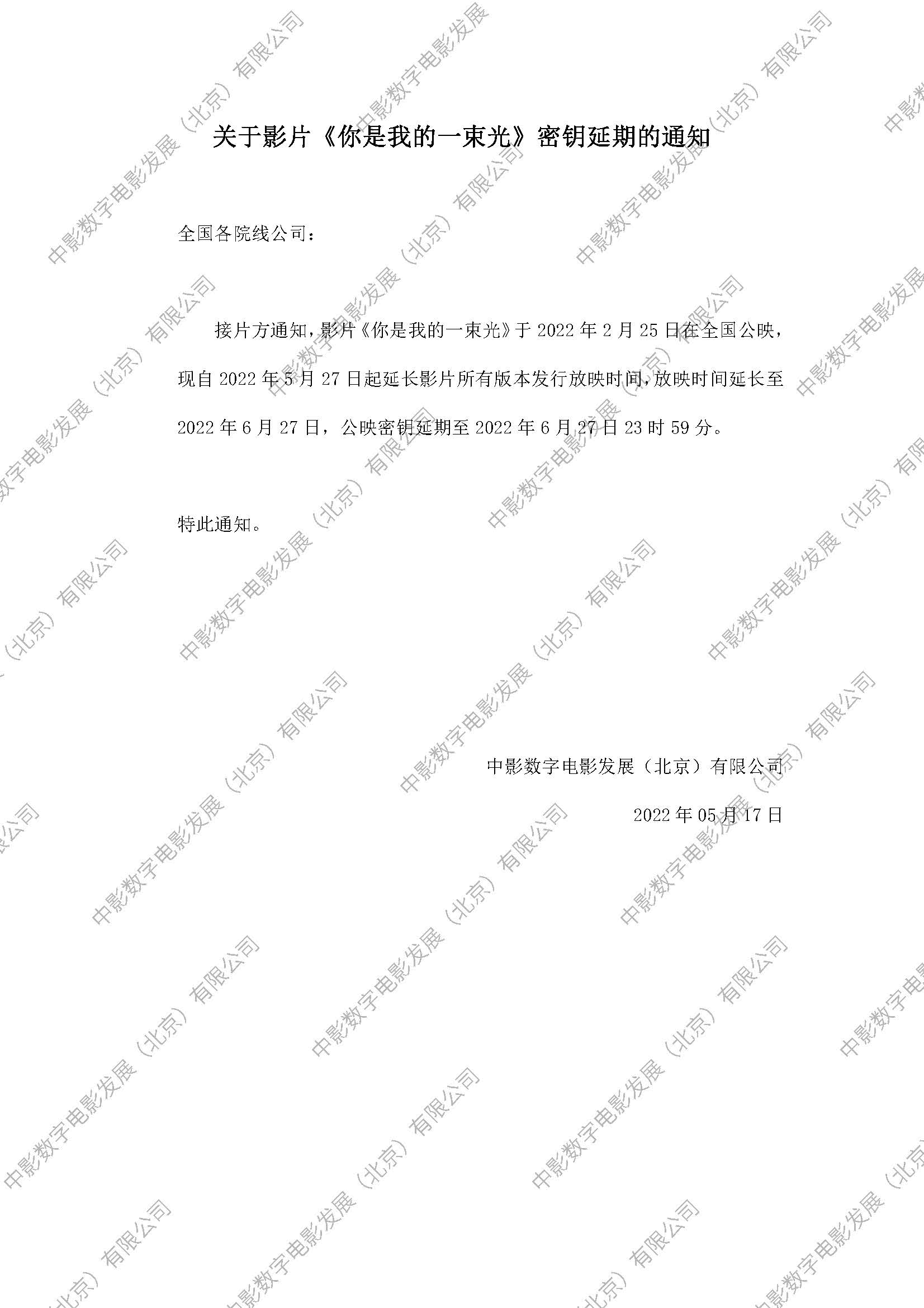 《你是我的一束光》密钥延期的通知