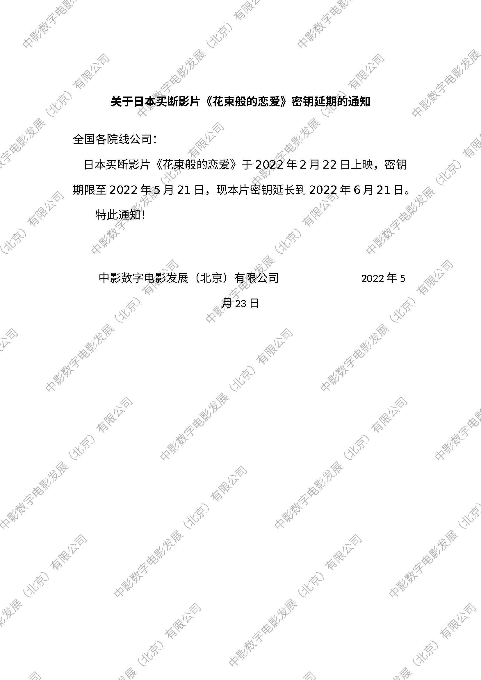 《花束般的恋爱》密钥延期的通知