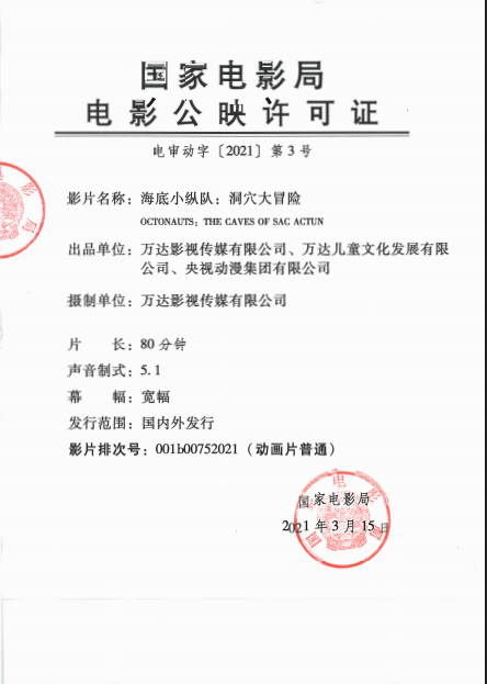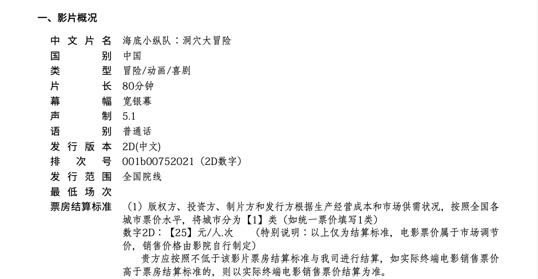 《海底小纵队:洞穴大冒险》调整票房分账比例的通知