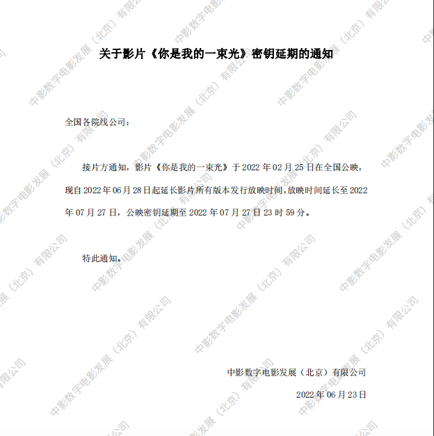 《你是我的一束光》密钥延期的通知