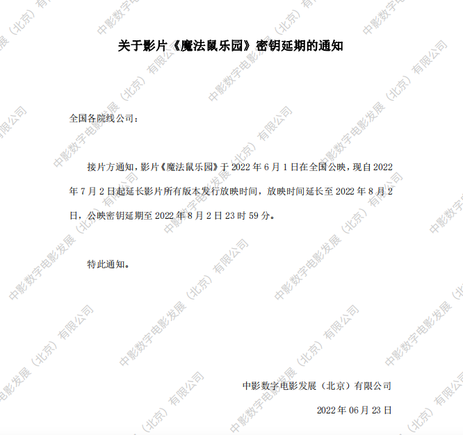 关于影片《魔法鼠乐园》全国点映的通知