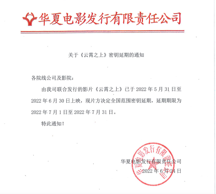 《云霄之上》密钥延期的通知
