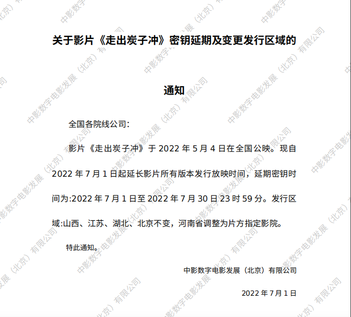 《走出炭子冲》密钥延期的通知