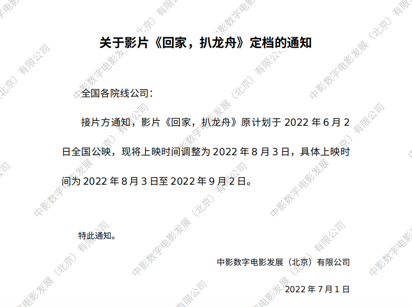《回家,扒龙舟》档期变更的通知