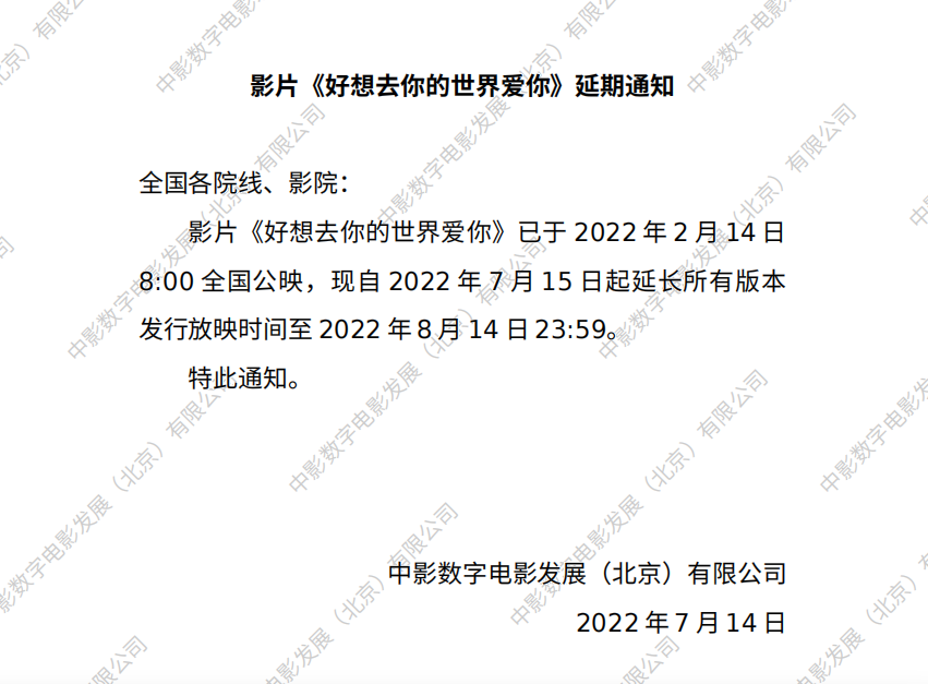 《好想去你的世界爱你》延期的通知
