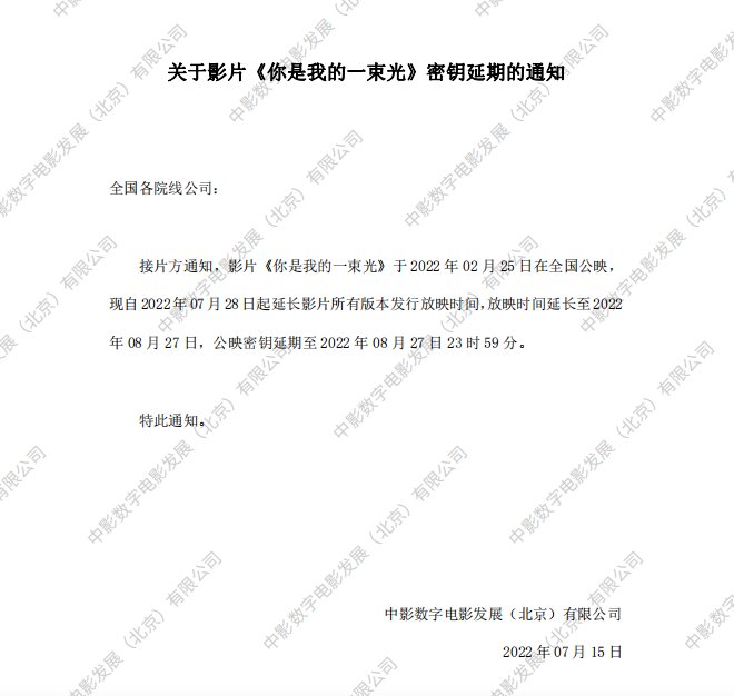 《你是我的一束光》密钥延期的通知