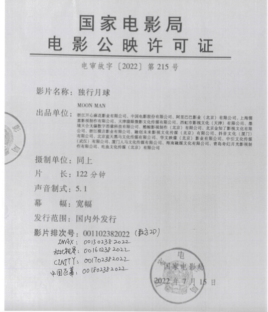 发行通知 » 《独行月球》发行通知