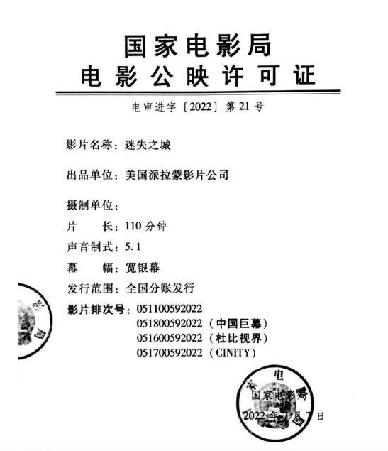 发 行:中国电影股份有限公司北京电影发行分公司(甲区)
