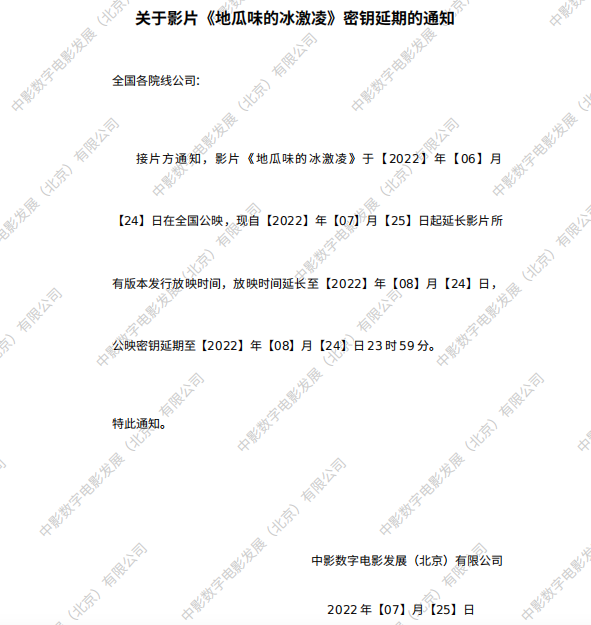 《地瓜味的冰激凌》密钥延期的通知
