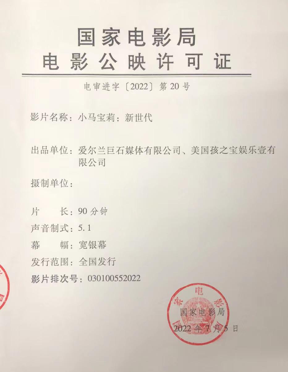 发行通知 » 《⼩马宝莉:新世代》发行通知