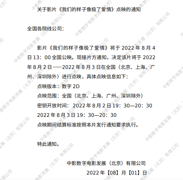 关于影片《我们的样子像极了爱情》的点映通知