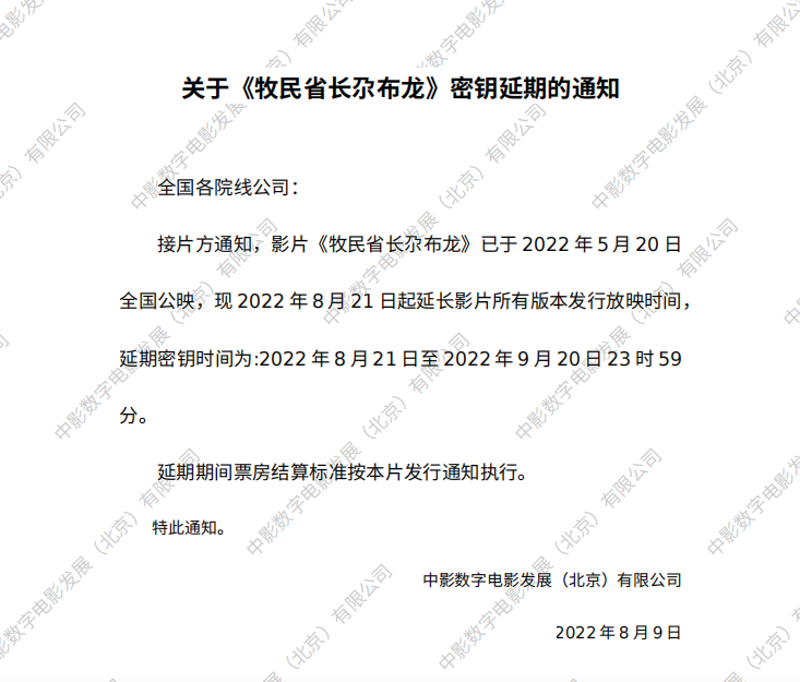 发行通知 » 《牧民省长尕布龙》密钥延期的通知