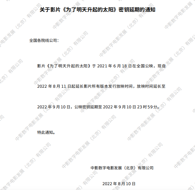 发行通知 » 《为了明天升起的太阳》密钥延期的通知