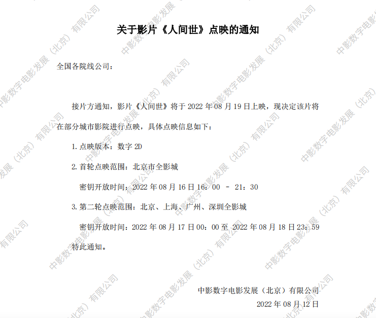 《人世间》发行通知