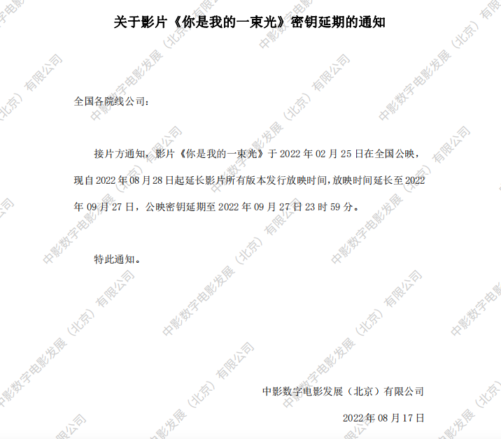 《你是我的一束光》密钥延期的通知