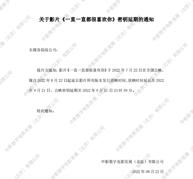 《一直一直都很喜欢你》密钥延期的通知