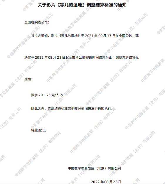 发行通知 » 《等儿的湿地》调整票房结算标准的通知