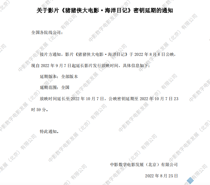 《猪猪侠大电影·海洋日记》密钥延期的通知