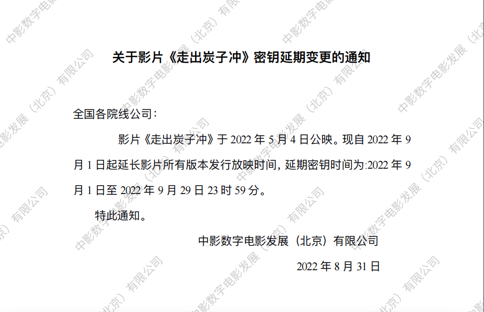 《走出炭子冲》密钥延期的通知