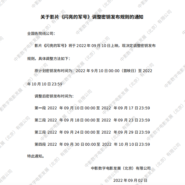 发行通知 » 《闪亮的军号》调整密钥发布规则的通知