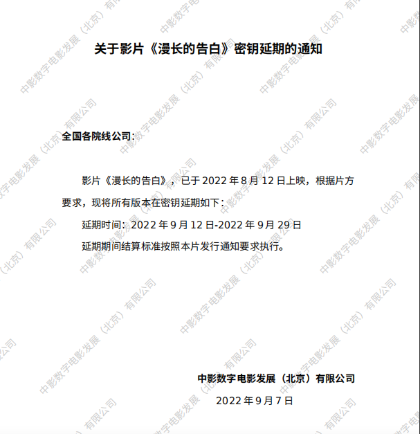 《漫长的告白》密钥延期的通知
