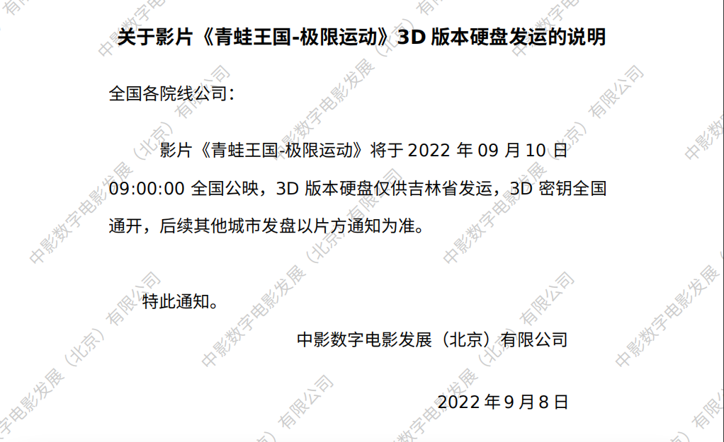 发行通知 » 《青蛙王国—极限运动》3D版本硬盘发运的通知