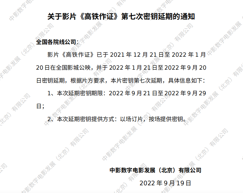 《高铁作证》第十一次密钥延期的通知