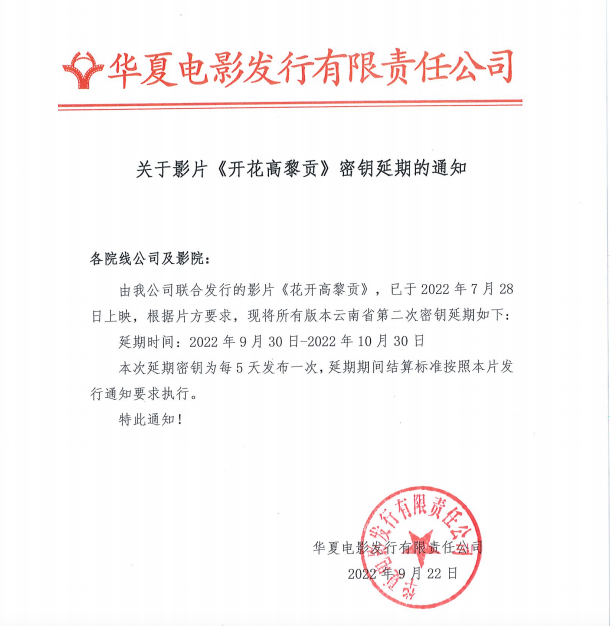 发行通知 » 《开花高黎贡》密钥延期的通知