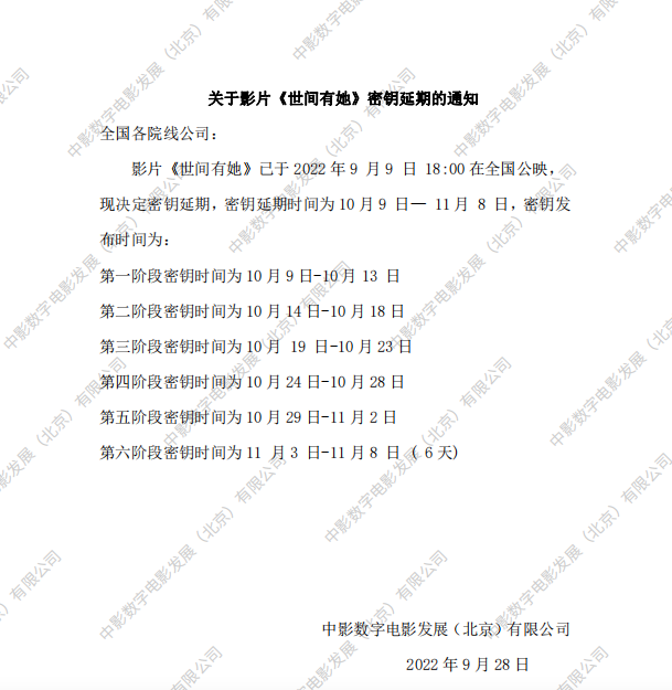 《世间有她》再次变更密钥发布规则的通知