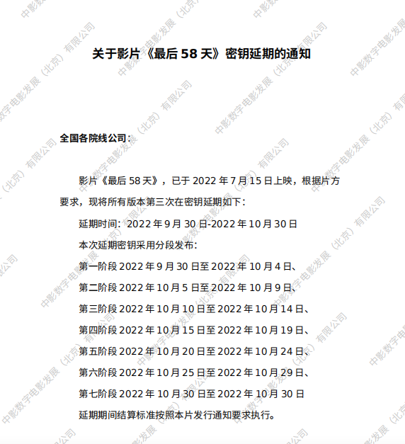 发行通知 » 《最后58天》密钥延期的通知