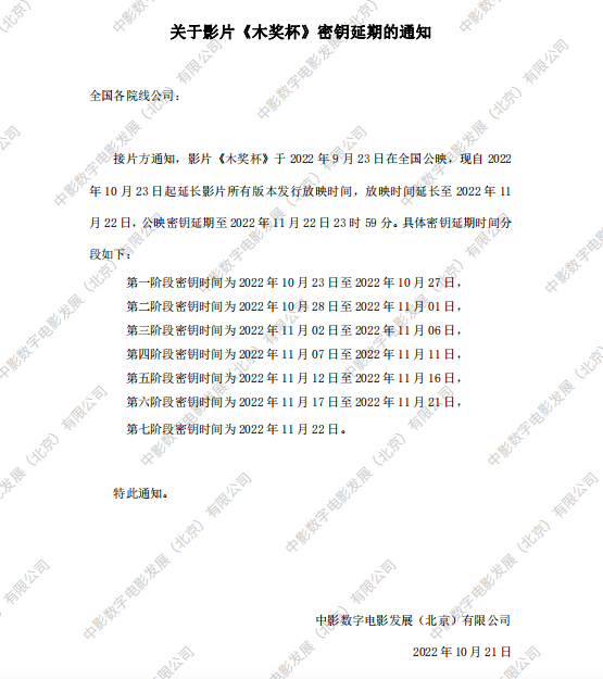 《木奖杯》变更密钥发布规则的通知