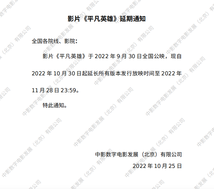 《平凡英雄》延期的通知