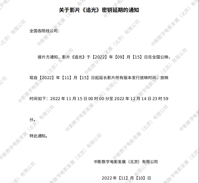 《追光》全国密钥延期的通知