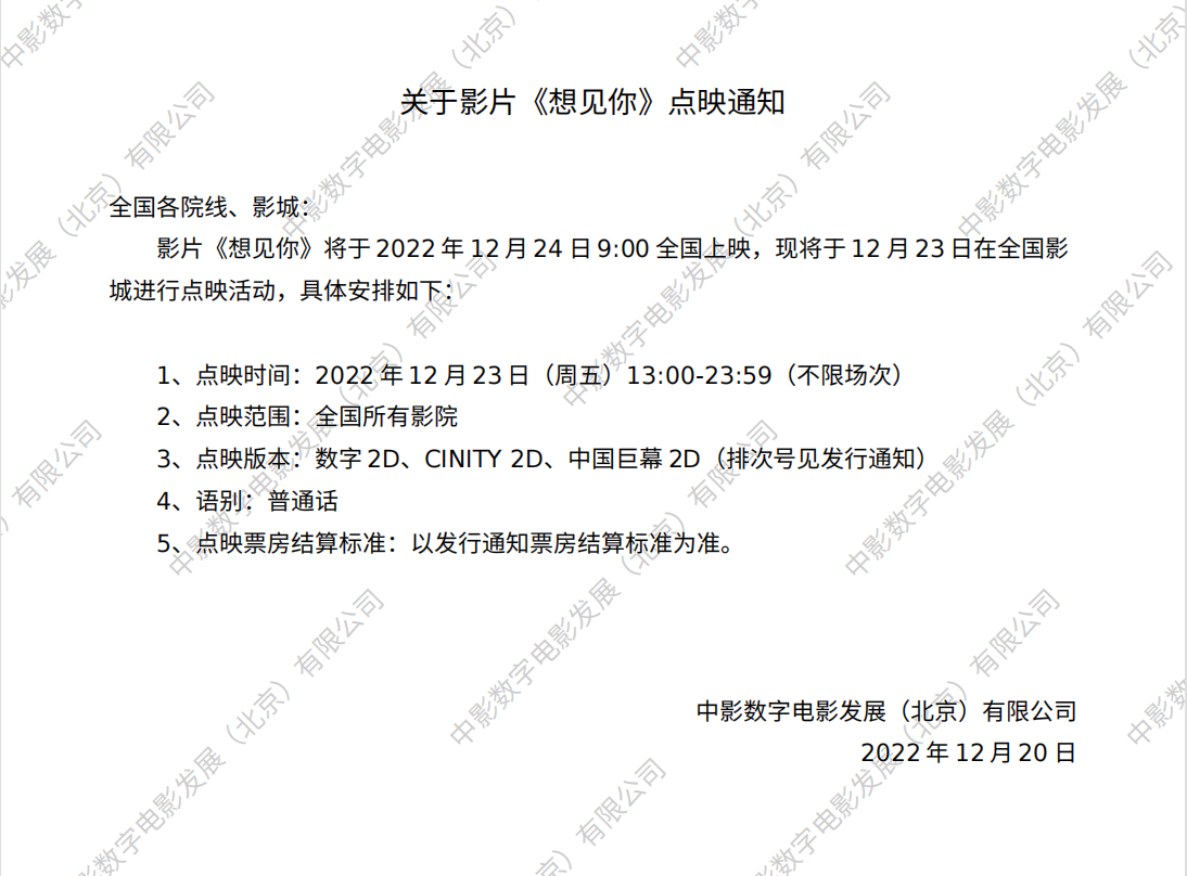 影片《想见你》发行通知