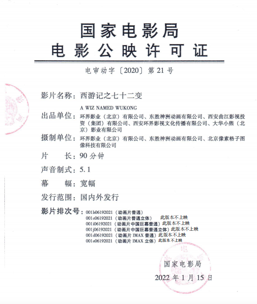 《西游记之七十二变》发行通知