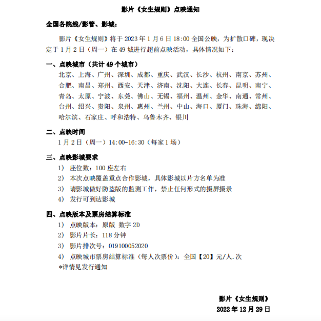 《女生规则》发行通知