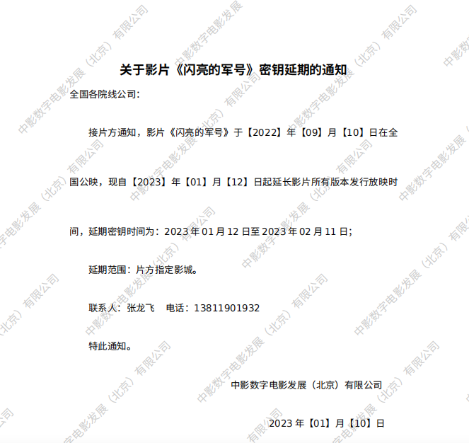 《闪亮的军号》密钥延期的通知