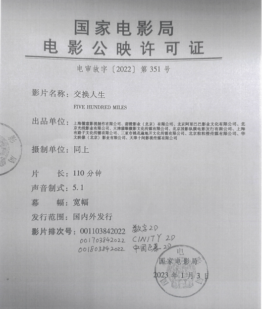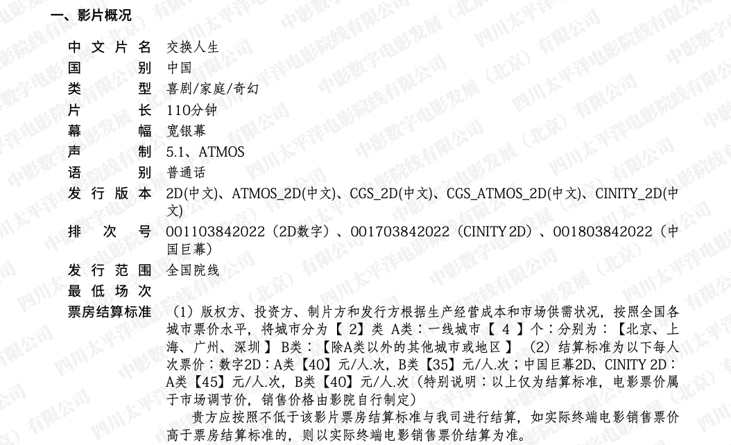 影片《交换人生》发行通知
