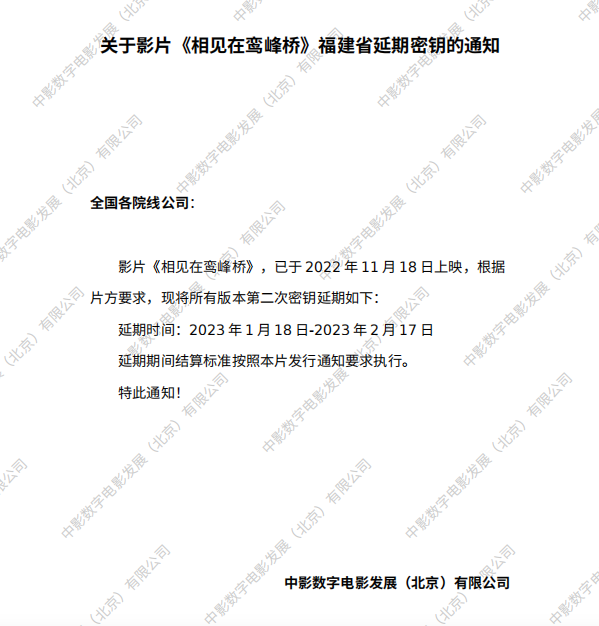 《相见在鸾峰桥》密钥延期区域变更及调整结算标准的通知