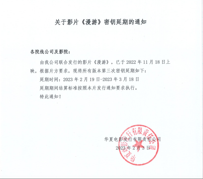 《漫游》密钥延期的通知